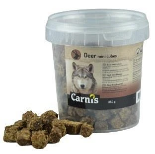 Carnis Hert Mini Blokjes zijn smakelijke snacks voor je hond. Door het handzame formaat zijn deze snacks ideaal als beloning tijdens het wandelen of om te gebruiken tijdens het trainen. De snacks zijn gemaakt van 100% hert en zeer geschikt voor pups en kleine hondenrassen.